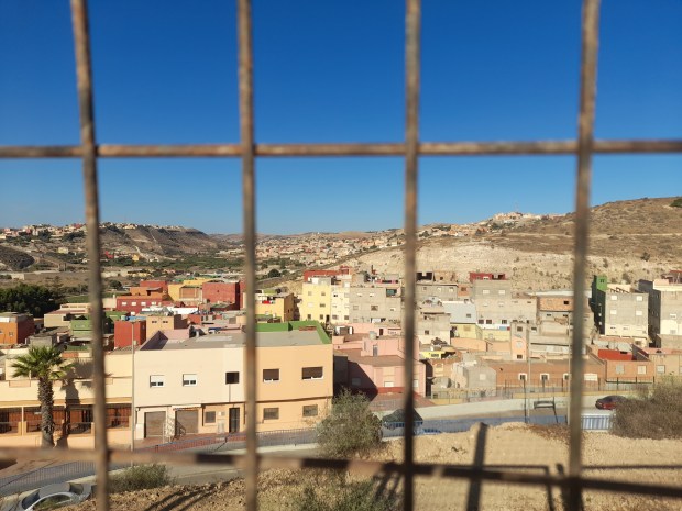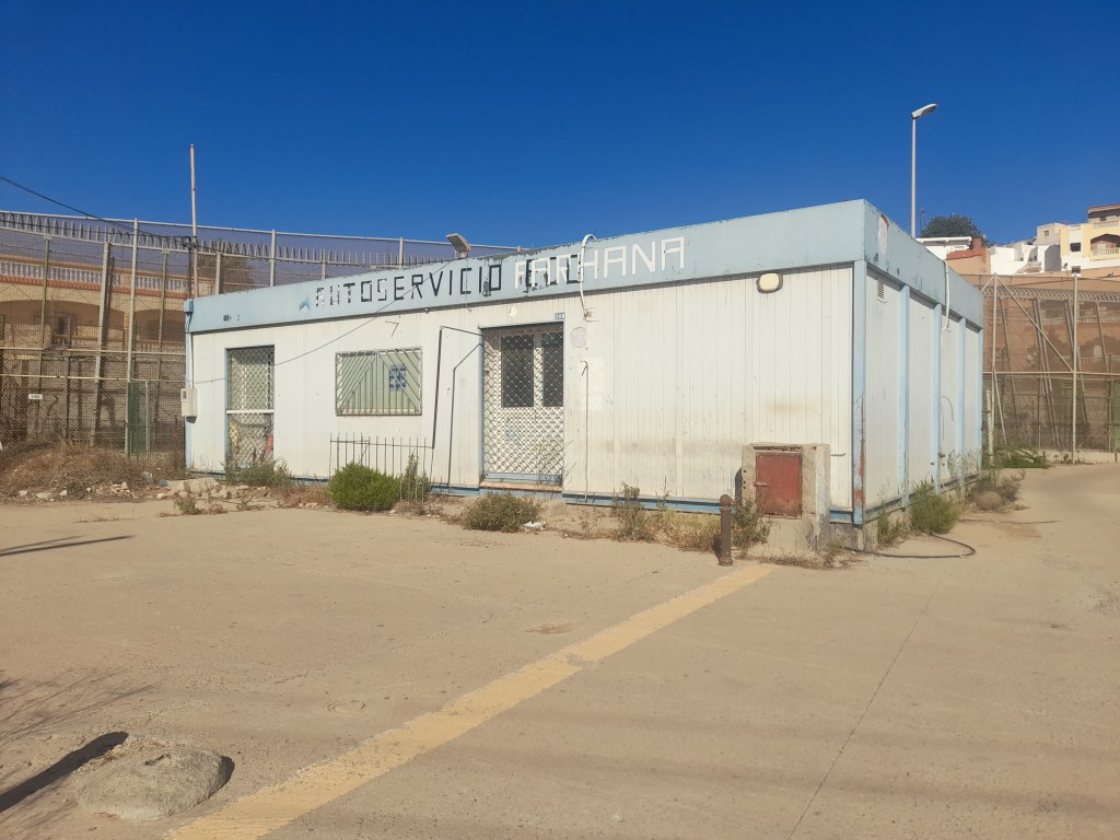 Volví a la calle principal, a pocos centenares de metros de la frontera. 50 metros ante del puesto fronterizo había una rotonda, que direccionaba el tráfico hacia el control de pasaporte para cruzar a España, hacia el puerto, o hacia la carretera que iba a Nador. Una camioneta de las Fuerzas Auxiliarías marroquís se había instalado delante de la rotonda. Los militares paraban todos los coches y los peatones que hacían por ir hacia el puesto fronterizo. Cada viajero tenía que ensenar el pasaporte, y solo los que tenían la documentación requerida para cruzar a España podían seguir hasta el paso fronterizo propiamente dicho. Ese control no existía antes de la pandemia. La reapertura de la frontera había extendido la frontera hacia más allá de la valla, por cincuenta metros más hacia la rotonda, creando un rectángulo rodeado de una valla invisible, entre la frontera, la camioneta de los militares, y los chiringuitos que vendían comida para las personas que hacían cola poder cruzar a Melilla en coche.