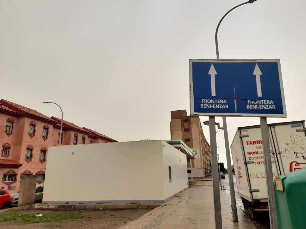 Llegada al puesto fronterizo, me pongo en la cola de los peatones. Después de unos minutos llega mi turno. Voy hasta la ventanilla, enseno mi pasaporte, y contesto a las preguntas que me hace el policía marroquí. Después de unos momentos, el hombre me sella el pasaporte, y otro compañero suyo sentado una ventena de metros más allá me lo verifica otra vez. Pasada al lado español, un Policía Nacional pasa mi pasaporte en el sistema identificativo, y luego me deja pasar. Ando unos metros más, y un vigilante me para nuevamente para pedirme el pasaporte sanitario. Se lo enseno, y me deja ir. Finalmente, la Guardia Civil me para, y me pide que llevo en la bolsa de plástico. ‘Es fruta y verdura, hice la compra en Beni Ensar’. ‘Puede enseñármela si es tan amable?’ me pide. Poso la compra en una mesa, y la abro para que el Guardia Civil pueda ver que sí, no es nada más que fruta y verdura. En la mesa de al lado, una pareja está discutiendo con otro Guardia Civil sobre el derecho de llevarse o no a casa el marisco que han comprado en Marruecos. Vuelvo a mirar el militar, que revisa rápidamente mi bolsa de la compra. Hace un gesto seco de asentimiento con la cabeza , y me dice: ‘Pasa’.
